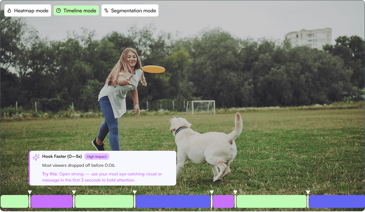 Actionable Insights (“Attention drops at 0:15 — simplify transition”)