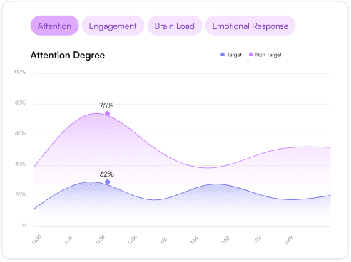 Not opinions or surveys. We measure actual attention, cognitive load, and emotional activation from your target