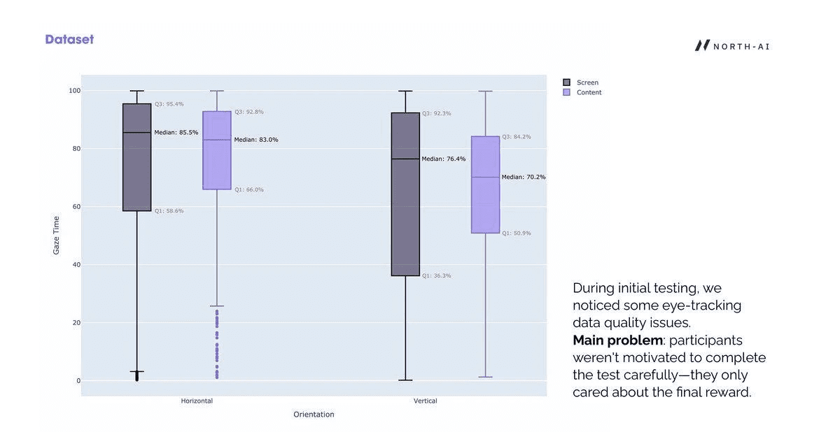 During initial testing, the research team identified a data quality problem. Participants appeared to complete the eye-tracking tasks carelessly — motivated primarily by the end-of-study reward rather than genuine attention. This introduced noise into the gaze data, particularly for content gaze vs screen gaze ratios.