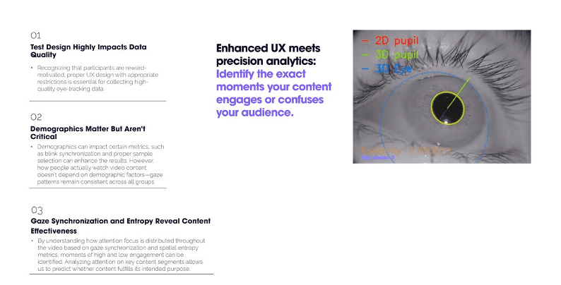 Fig. 20 — Three key conclusions from the study: test design impacts data quality; demographics matter but aren't critical; gaze synchronisation and entropy reveal content effectiveness.
