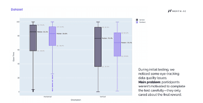 During initial testing, the research team identified a data quality problem. Participants appeared to complete the eye-tracking tasks carelessly — motivated primarily by the end-of-study reward rather than genuine attention. This introduced noise into the gaze data, particularly for content gaze vs screen gaze ratios.