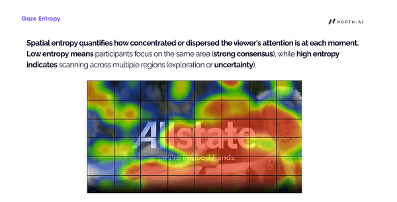 A neuroscientific study conducted by North AI. 301 participants across the US and Canada were eye-tracked while watching 6 promotional videos. Gaze synchronisation and spatial entropy data revealed which moments engage audiences — and which don't.