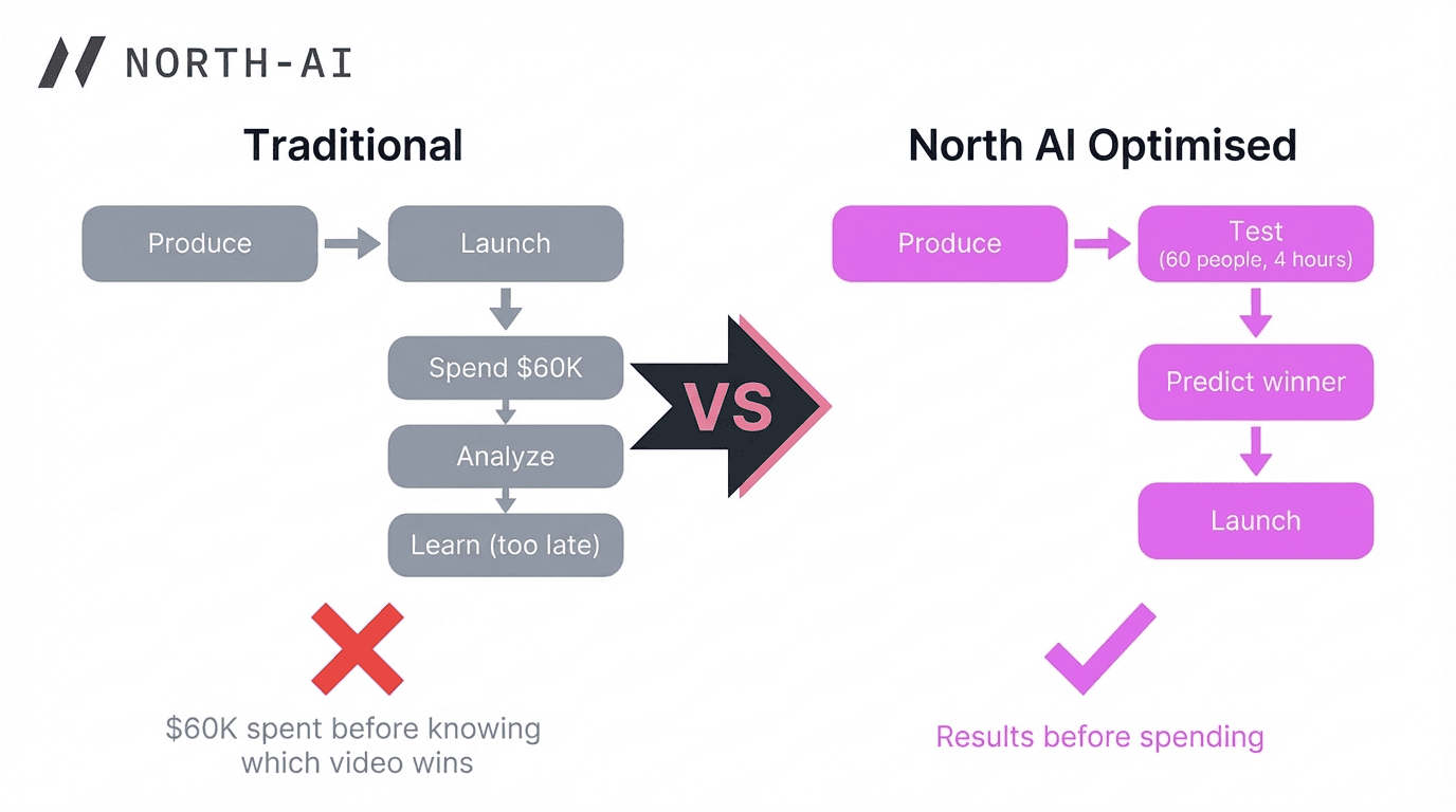 North AI uses simulated cognitive testing to predict which video creative will perform best — before you spend on media. Results in under 4 hours.