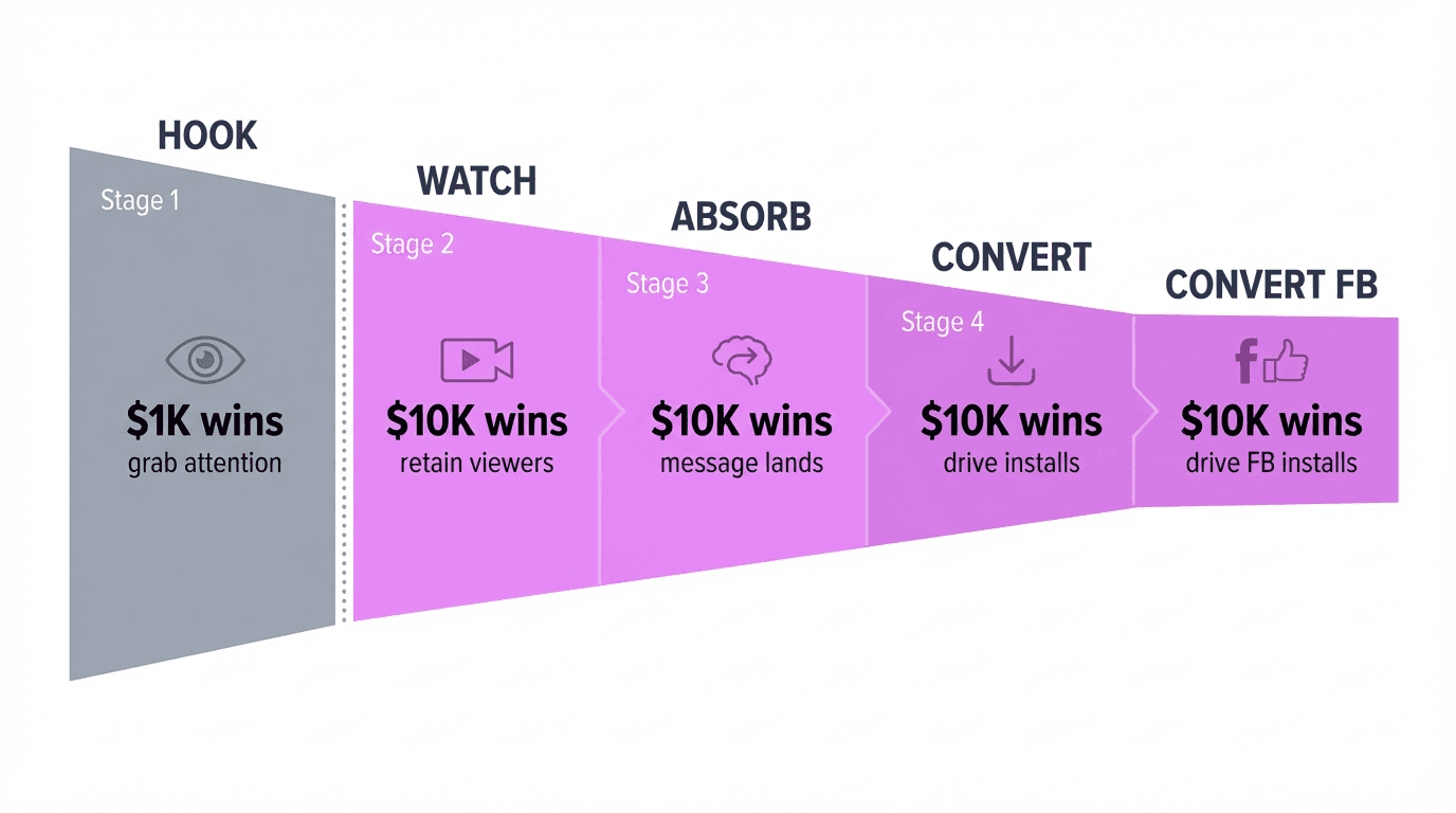 No single metric predicts everything. Hook strength predicts cheap views. Message clarity predicts conversion. They don't always point at the same video. Know which stage of the funnel matters most for your campaign.