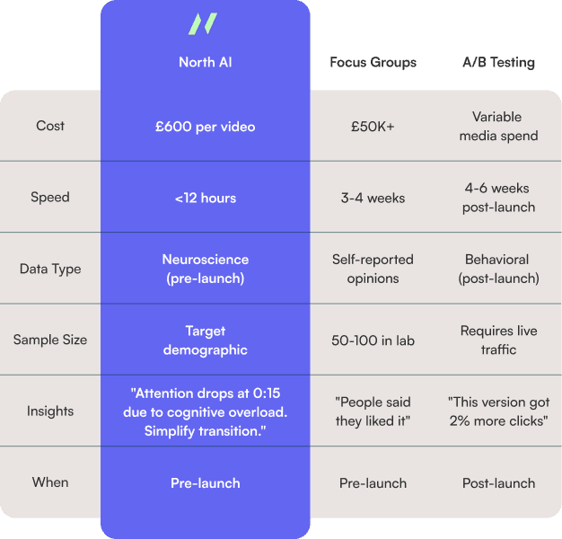 "North AI showed us exactly where our ad lost attention—before we spent £200K on media. The brain engagement metrics matched our actual performance data."